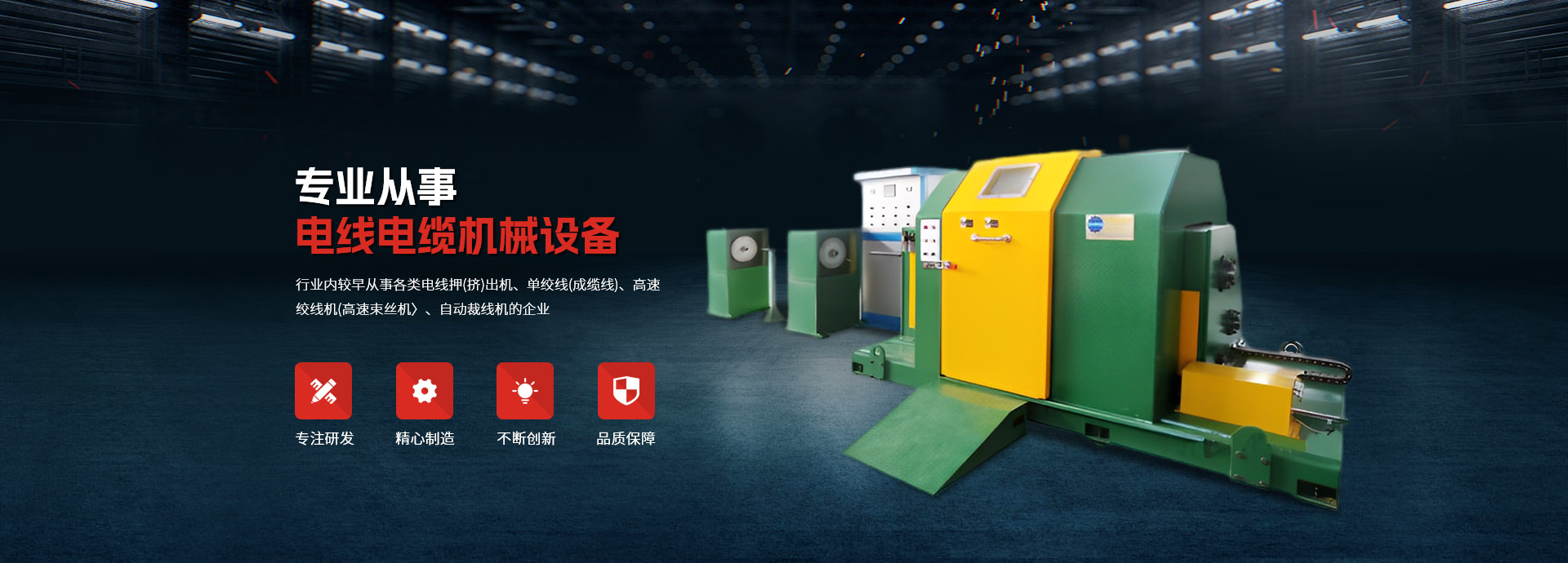 公司1993年在臺灣開始涉足線纜機械制造領域,較早從事各類電線押(擠)出機、單絞線(成纜線)、高速絞線機(高速束絲機〉、自動裁線機制造。